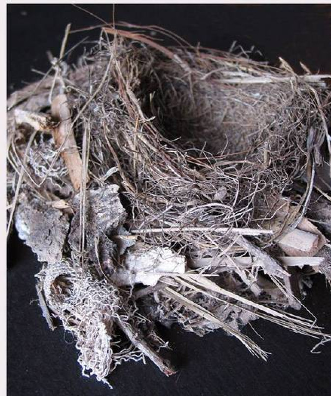 Built by an unknown bird, the construction involves a shallow, woven bowl around 12 cm in diameter, made of dried grasses, weeds, fibers and human hair. This bowl is sitting on a messy pile of tree bark, leaves, broken branches and dried grasses. Found in a niche in a courtyard wall, Kypriotianika. If you can identify the maker of this nest, please add your comments below.