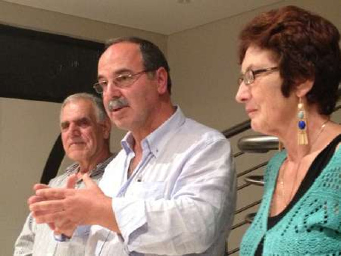 Mayor Theothori Koukoulis flanked by Michael and Carol Mallos