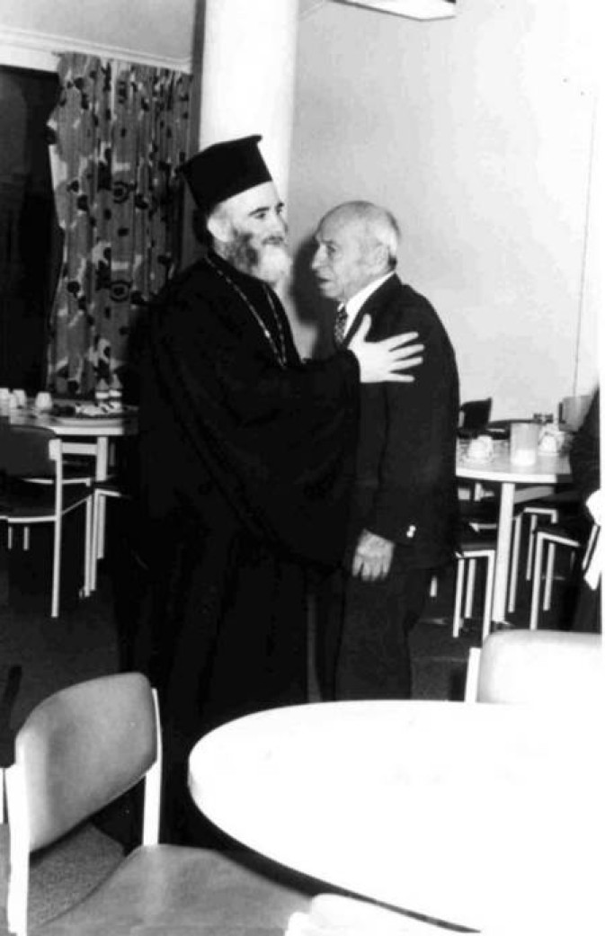 Nicholas Laurantus with the Bishop of Crete at Lourantos Village, 1977.