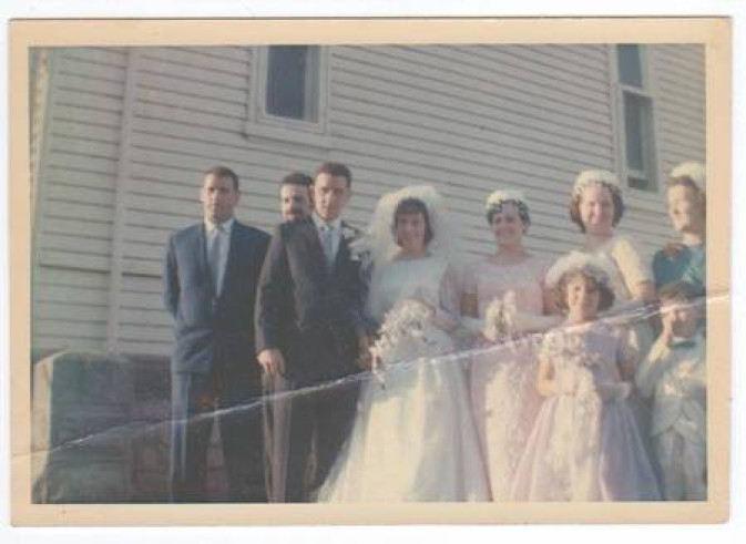 wedding , with Pasquale Comninos at back, Michael Comino ,Me leslie, Marjorie, Valerie, Marjories sister, Ellanie ,my sister, Marjorie,s Mother Verla, Sylvia and Patrick