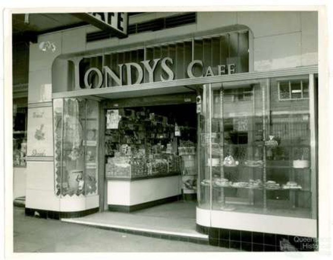 Shopfront, Londy's Cafe, Toowoomba, 1962