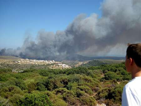 View Full MessageApproaching the northern edge of Mitata, the fire florishes in high winds and 36 degree temperatures...
