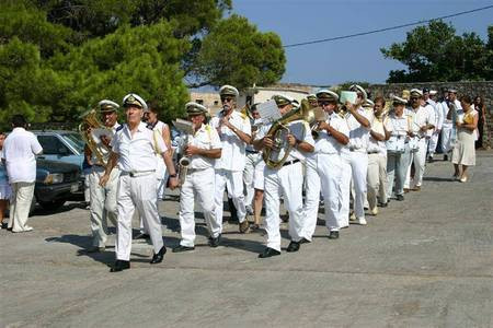 famous kytherian with his famous band . what would the 15th of august at myrtihia be without the man...