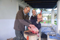 View Full Messagegetting ready for the Christmas lunch these two trifyllanika residents prepare these large two turke...